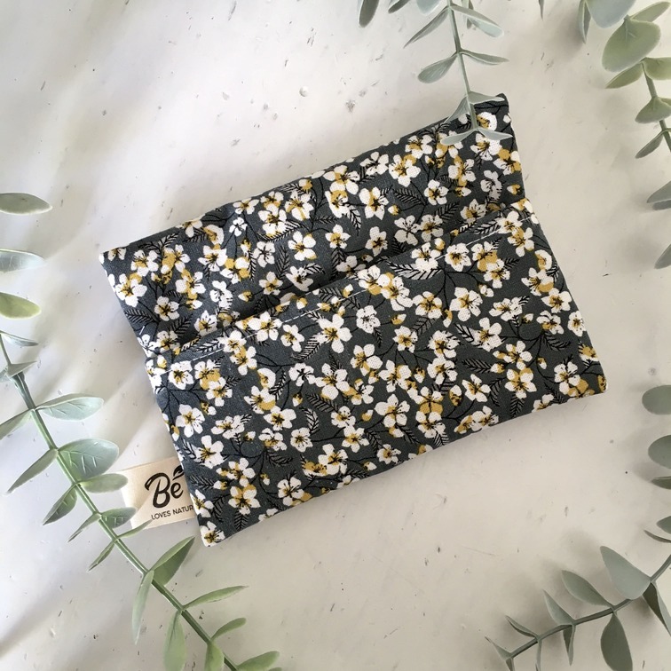 Pochette savon conçue  en tissu upcyclé 100% solidaire (tissu chiné dans des associations) ou en tissu labellisé Oeko-Tex, avec intérieur imperméable.