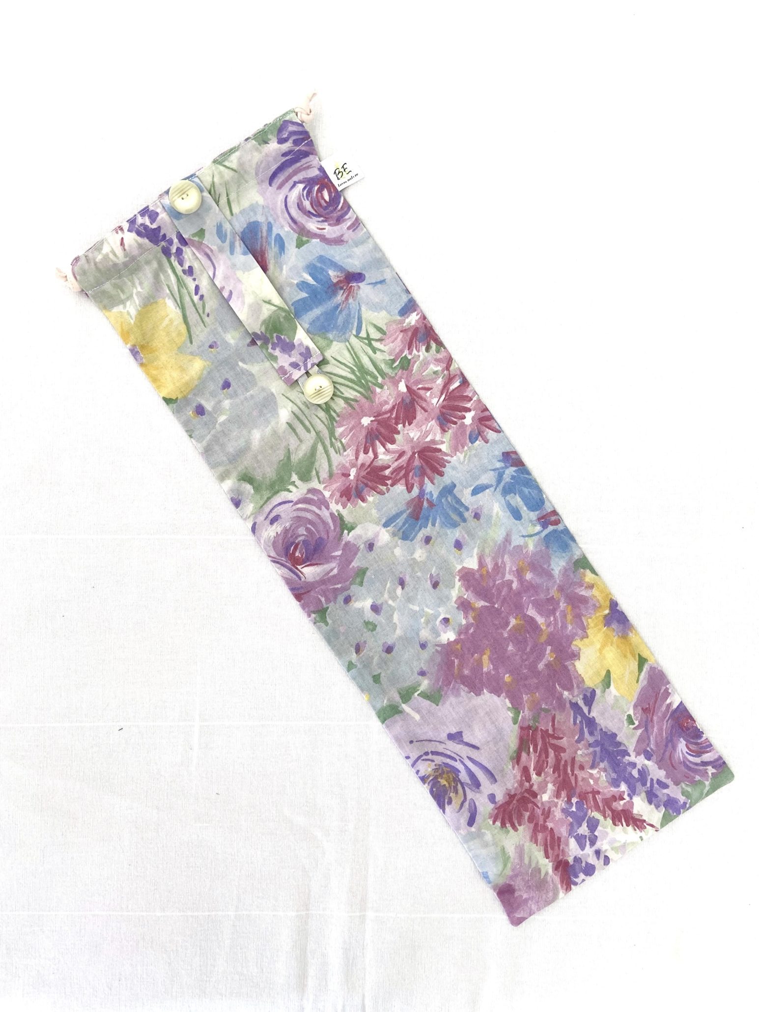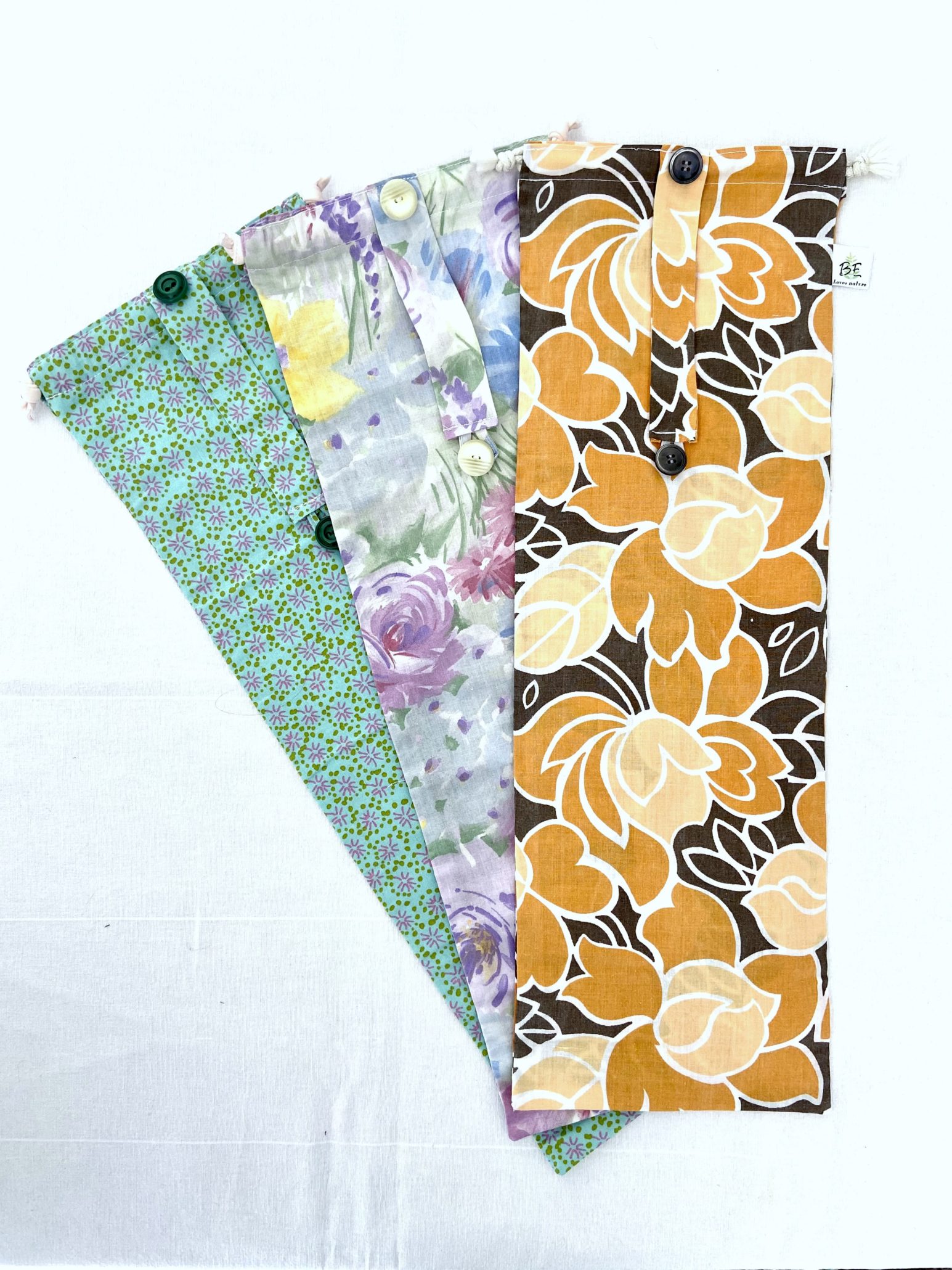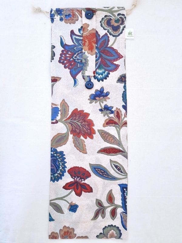Le sac à baguette & flûte est fabriqué en tissu recyclé et solidaire chiné en associations de la région lyonnaise, ou en tissu biologique. Il est conçu par mes soins à Lyon ou dans l’Ain.